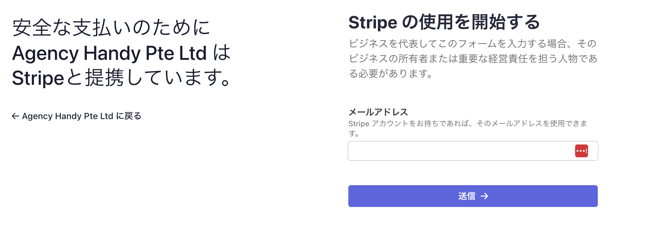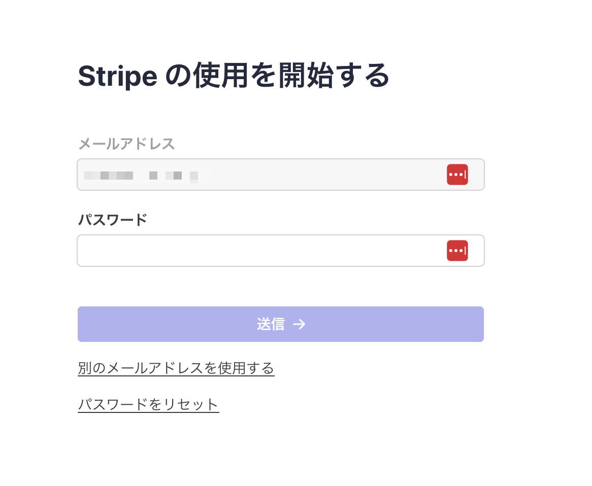 ストライプに契約しているメールアドレスとパスワードを入力します